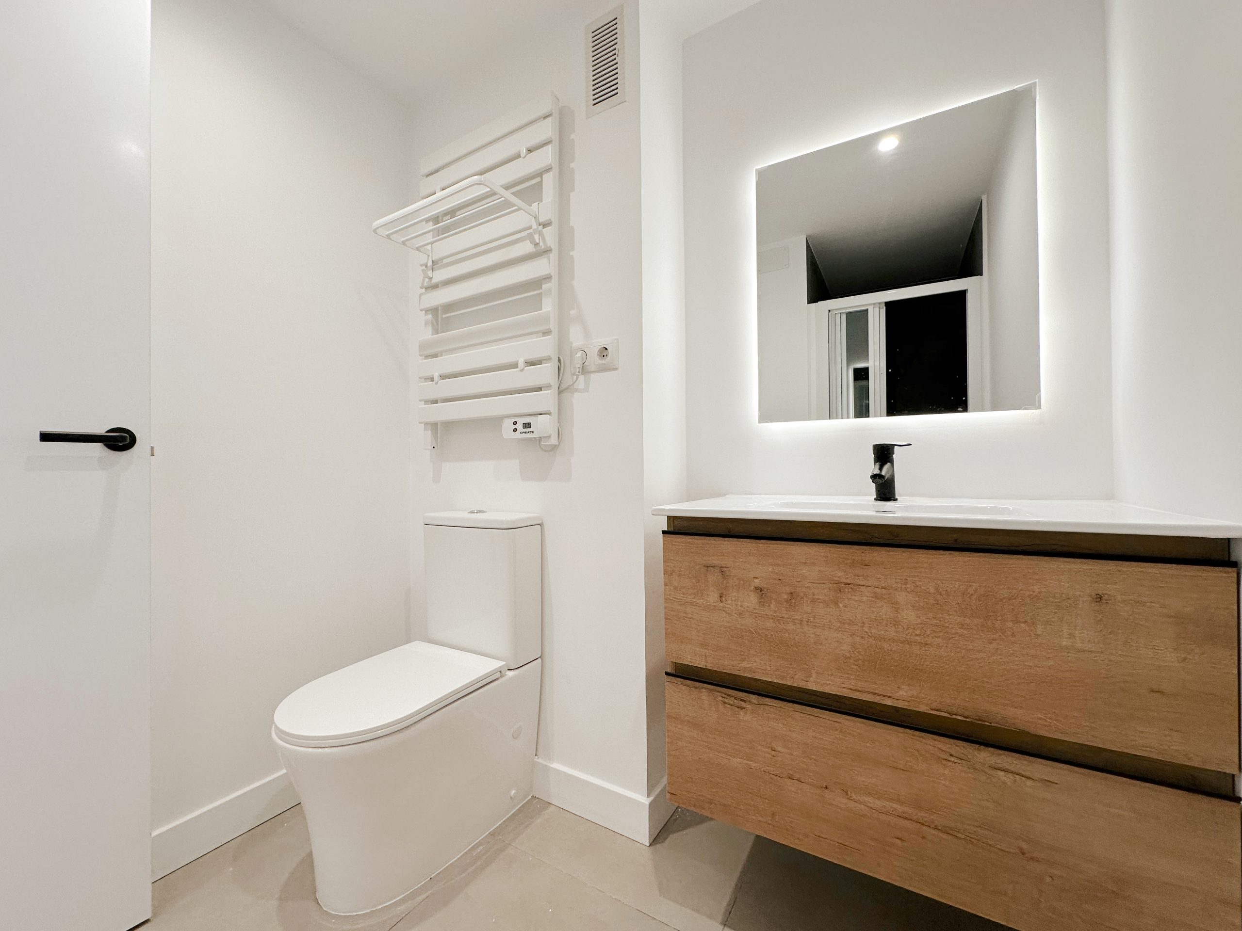 Este espectacular piso de 80 m² ha sido diseñado para ofrecer comodidad, estilo y funcionalidad en un entorno exclusivo. Recientemente reformado con materiales de las mejores calidades, combina un diseño moderno con detalles tecnológicos que hacen la vida más cómoda y eficiente. Nada más entrar, te recibe un espacioso salón que actúa como el corazón del hogar. Grandes ventanales de suelo a techo inundan el espacio de luz natural durante todo el día, realzando la sensación de amplitud. Desde el salón, se accede a una amplia terraza privada, ideal para disfrutar al aire libre, relajarse, compartir momentos con amigos o simplemente disfrutar de las vistas. El piso cuenta con dos generosos dormitorios, ambos diseñados para aprovechar al máximo la luz natural gracias a sus grandes ventanas. Los acabados de lujo en paredes y suelos, con tonos cálidos y sofisticados, crean un ambiente acogedor y elegante. Ambos dormitorios son perfectos tanto para descansar como para instalar un espacio de trabajo o estudio. La cocina, completamente independiente, ha sido diseñada para optimizar cada rincón. Equipada con electrodomésticos de alta gama y mobiliario a medida, cuenta con una amplia encimera que facilita la preparación de comidas, armarios con cierre suave y acabados en tonos neutros que aportan sofisticación y funcionalidad. El cuarto de baño es un oasis moderno que combina estética y funcionalidad. Está equipado con grifería de última generación, una espaciosa ducha con mampara de cristal y detalles en piedra natural que aportan un toque elegante. Cada elemento ha sido seleccionado pensando en la comodidad y el El piso está equipado con un sistema de calefacción eléctrica de última generación, que se puede controlar de diferentes maneras: manual, mediante un termostato programable o incluso desde dispositivos inteligentes, lo que permite ajustar la temperatura según tus necesidades. Además, cuenta con aire acondicionado integrado, ideal para mantener una temperatura agradable durante los meses más cálidos. Desde los materiales de alta calidad hasta las soluciones tecnológicas, cada rincón del piso ha sido diseñado con cuidado. Los acabados modernos, las instalaciones eficientes y el diseño atemporal hacen de este hogar un lugar perfecto tanto para la vida diaria como para recibir invitados. Este piso es ideal para quienes buscan un espacio moderno, cómodo y lleno de luz, con detalles exclusivos que lo convierten en una joya dentro del mercado inmobiliario. ¡Un hogar listo para entrar a vivir!
